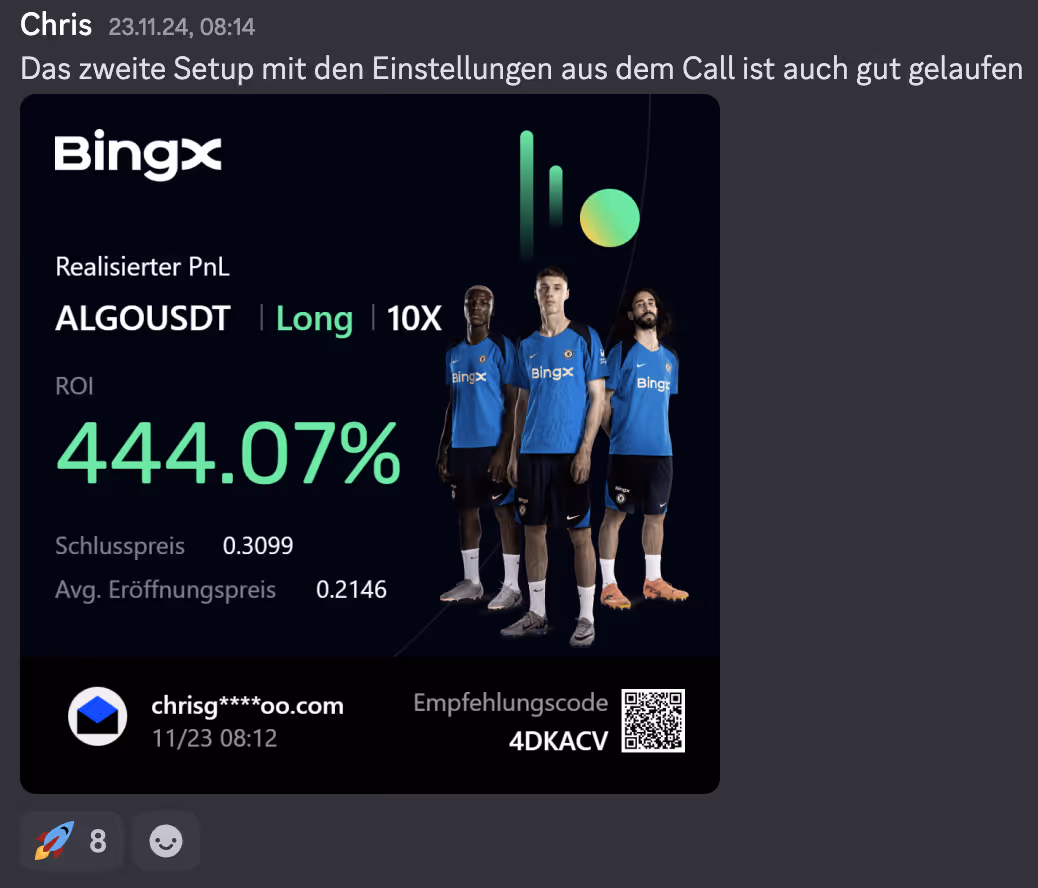 “Egal wann ich was haben wollte, Nachts 22 Uhr oder morgens um 6 Uhr war immer Support da. Die Module, Live-Calls, Discord und die Community bringen einen mega Mehrwert mit. Dankeschön für alles.”
