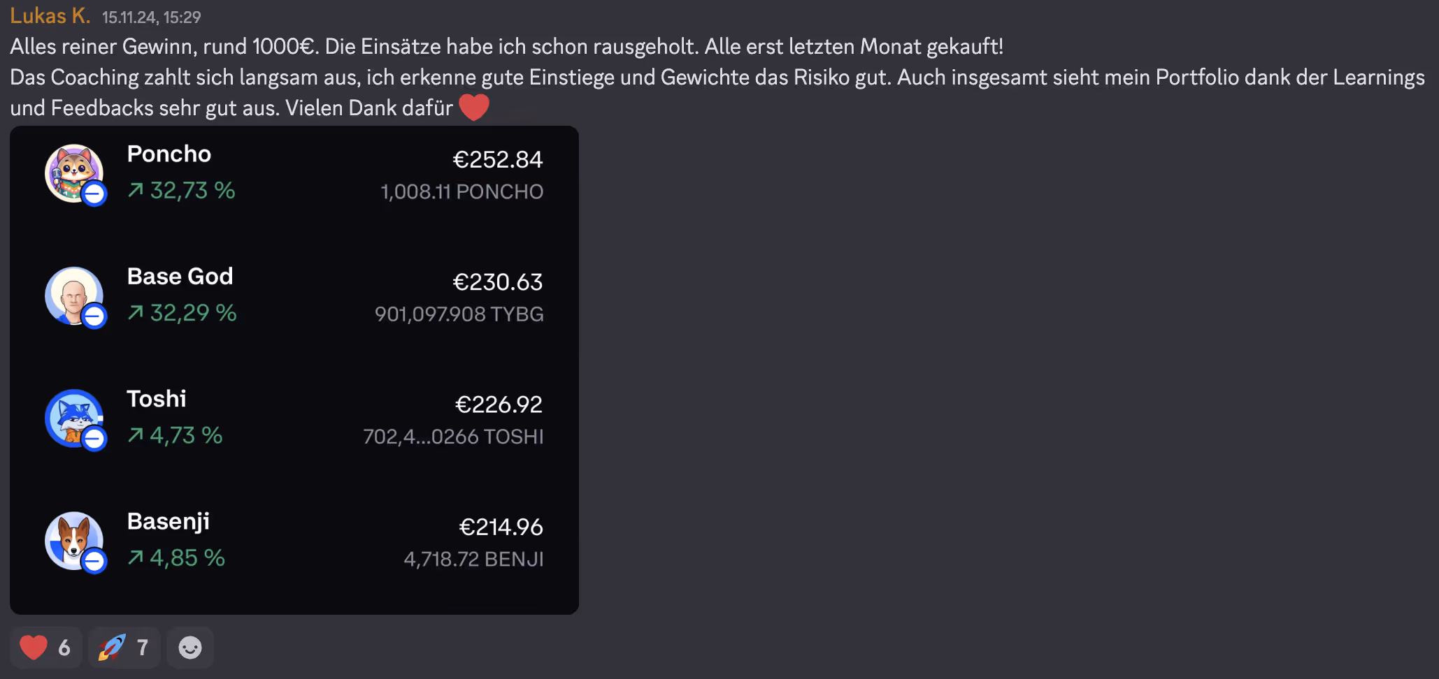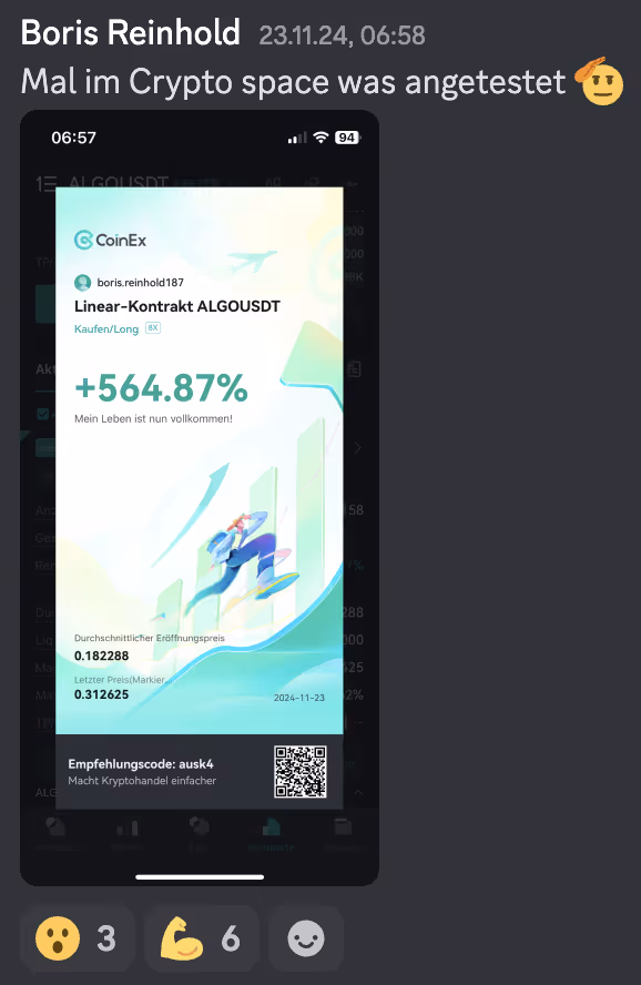 “Das Coaching kann ich jedem empfehlen, der im Krypto-Bereich tätig sein möchte. Die Mentoren sind Hammer, das Programm ist Hammer, man nimmt sehr viel aus den Live-Calls mit. Sehr Lehrreich!”